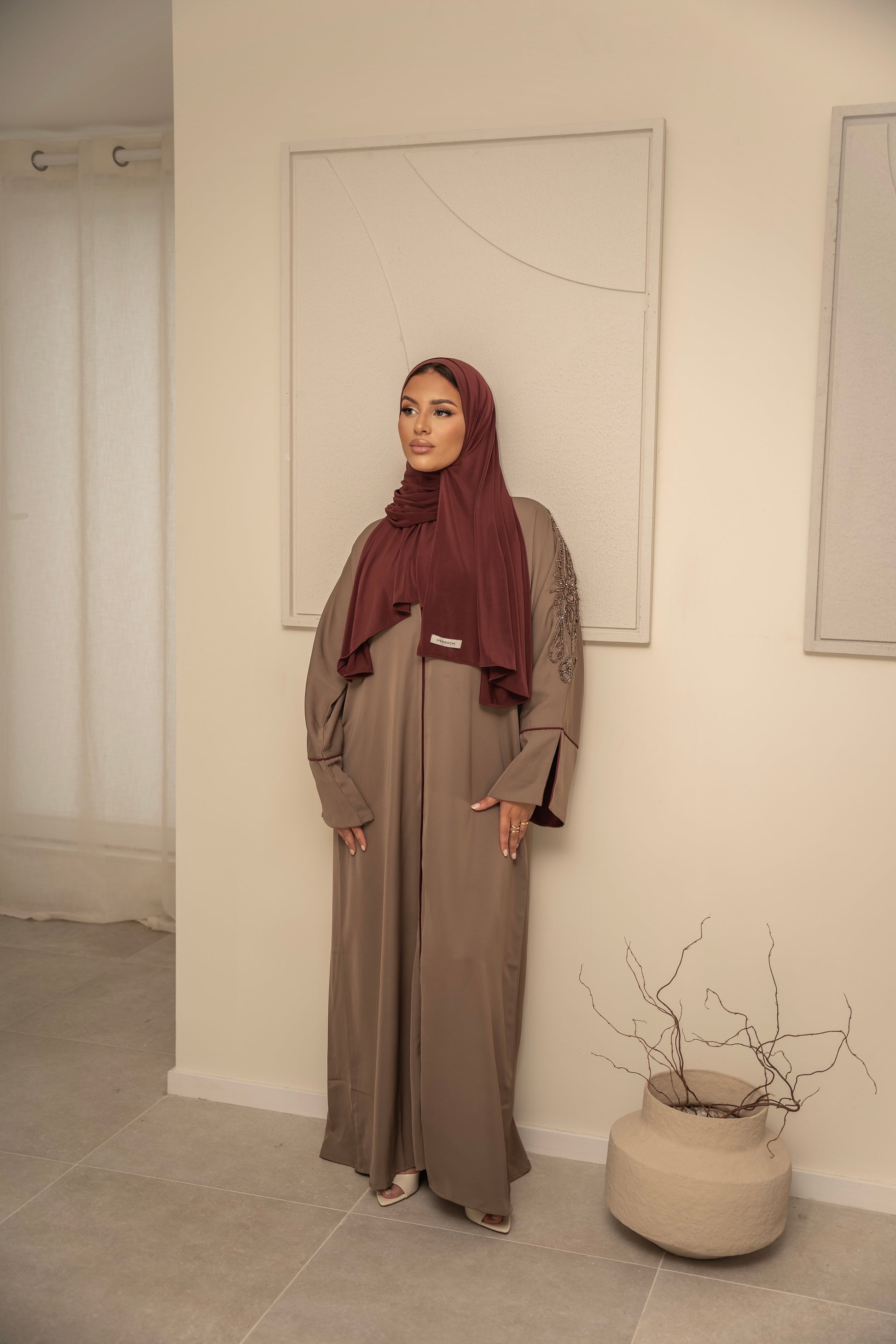ABAYA TESNIM TAUPE/BURGUNDY